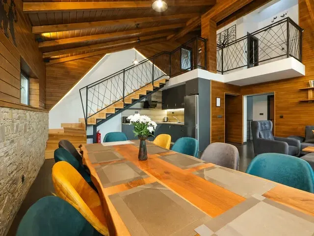 - 3–5 спални, всяка със собствен санитарен възел. -Просторна всекидневна с камина и трапезария.